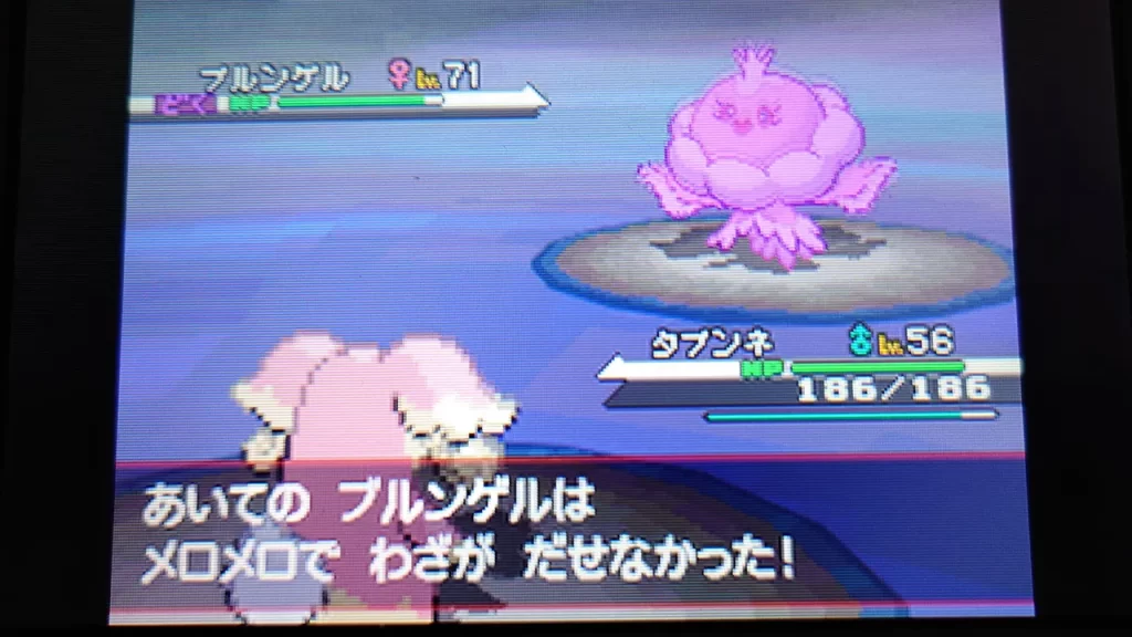 モタモタしてる間に特防積まれて唯一ばつぐんを取れるブルンゲルの技でもミリ程度しかダメージを与えられなかったんだけど……