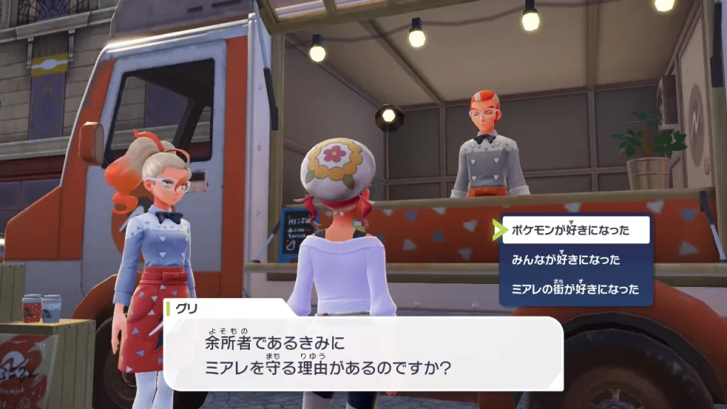 ここの選択肢、「みんなが好きになった」はちょっと無いし街への情熱もグリほどは無いし、苦し紛れに「ポケモンが好きになった」って答えた。