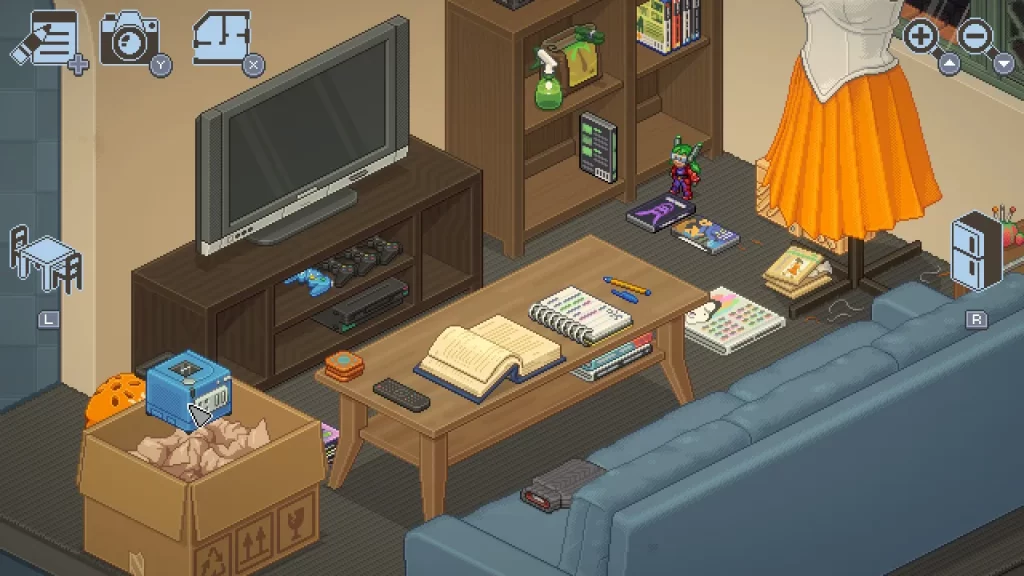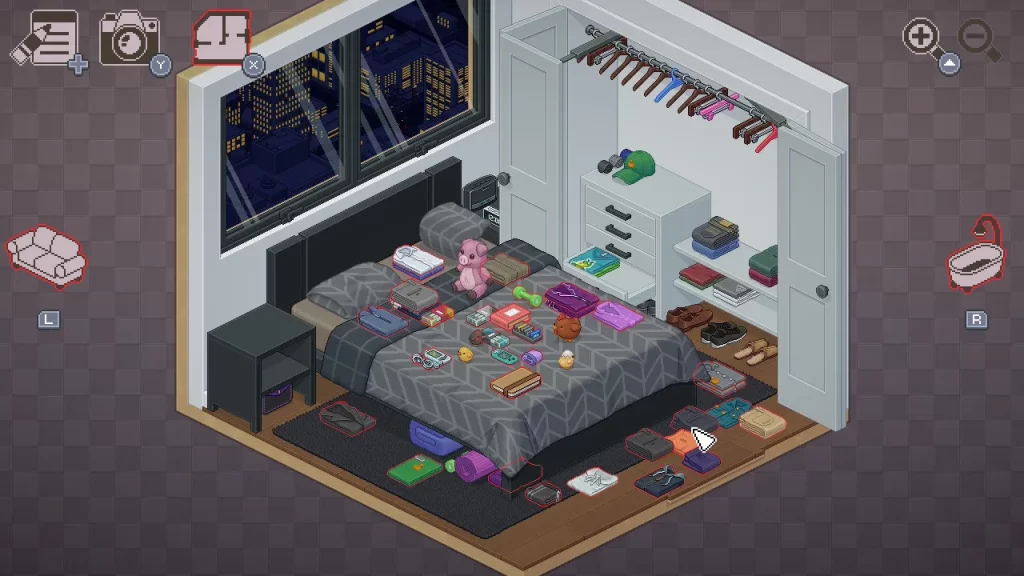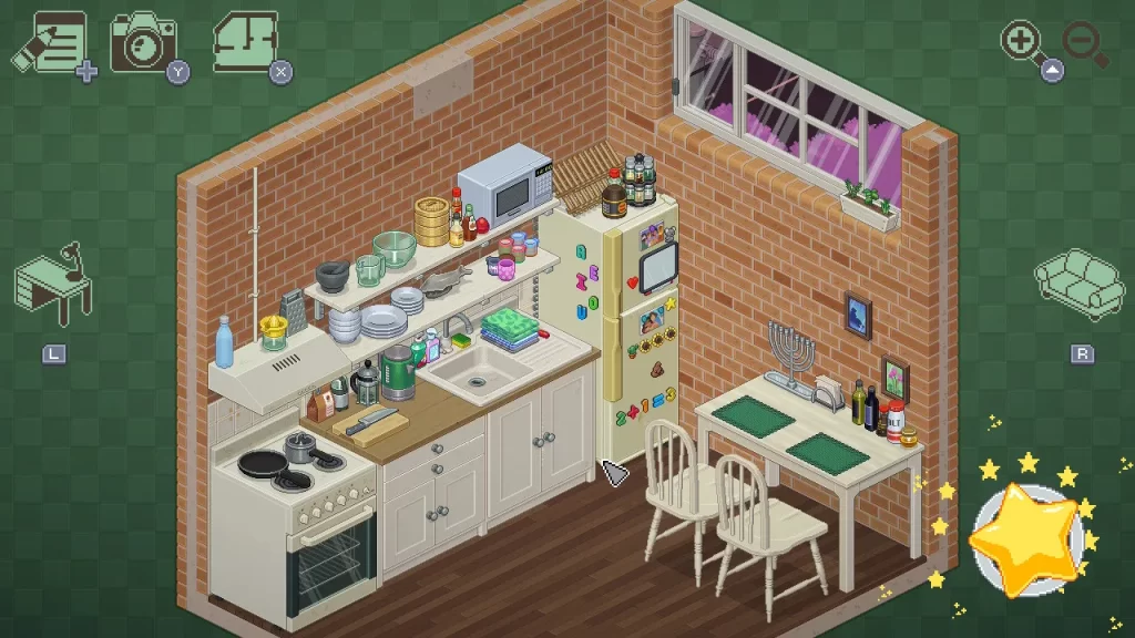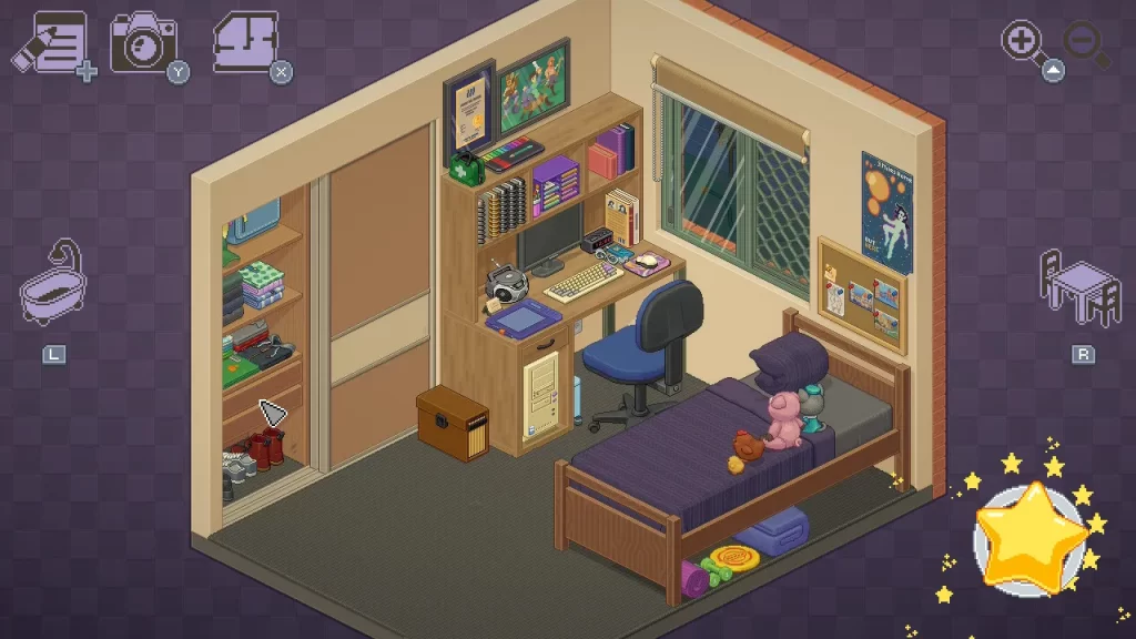 基本的に物の置き場所は決まってるんだけど(自由にレイアウトできるモードもある)、ある条件で物をレイアウトしたらステッカーが出てくる要素も面白かったし、テレビとかラジカセとか、一部のものに触ったら動くようなギミックが仕込まれてるのも楽しい!