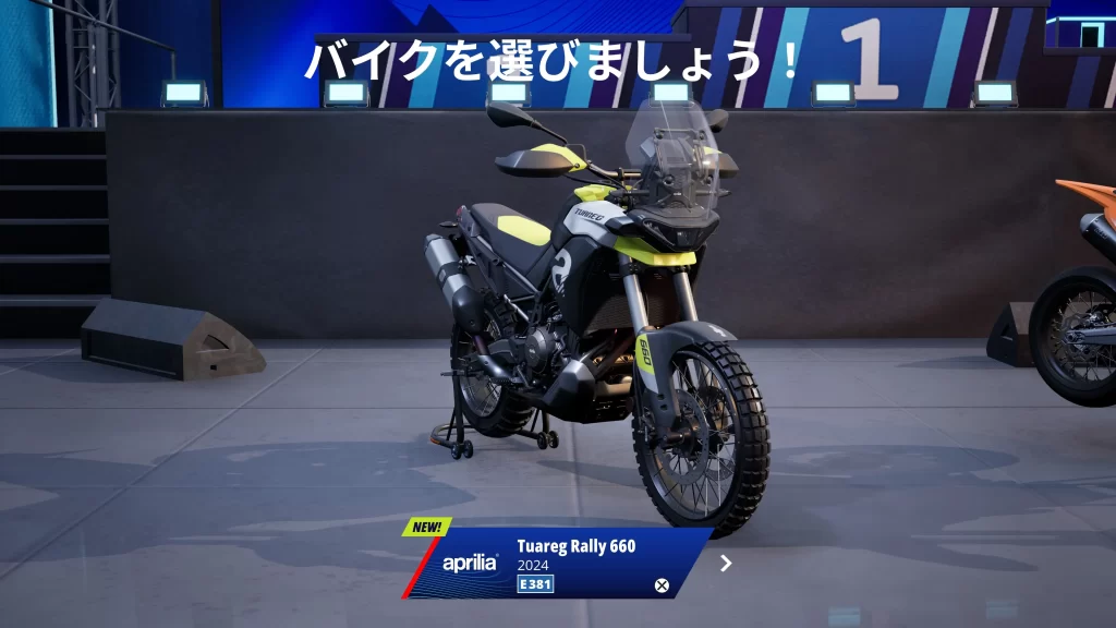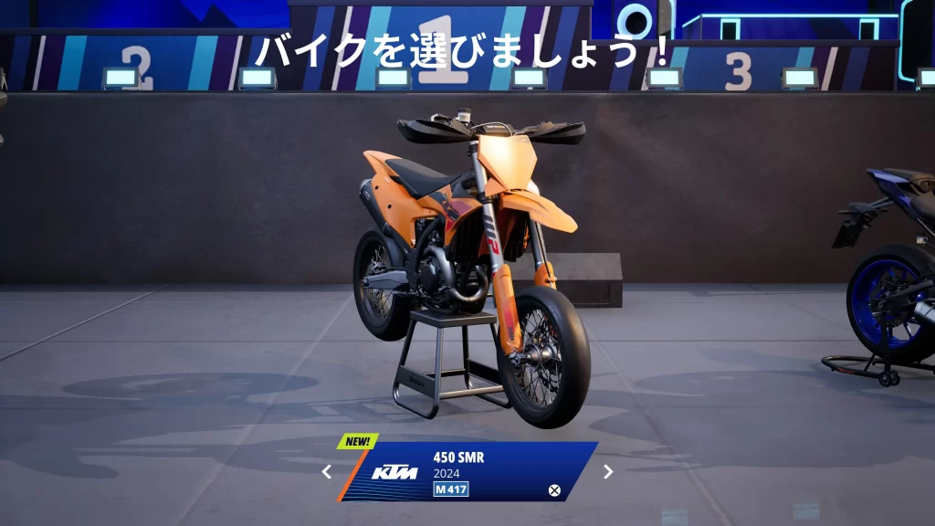 暗雲立ちこめつつ、とりあえず最初のバイクとウェアを選択。