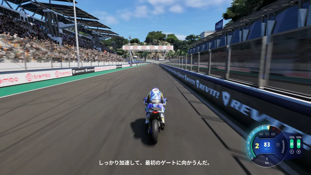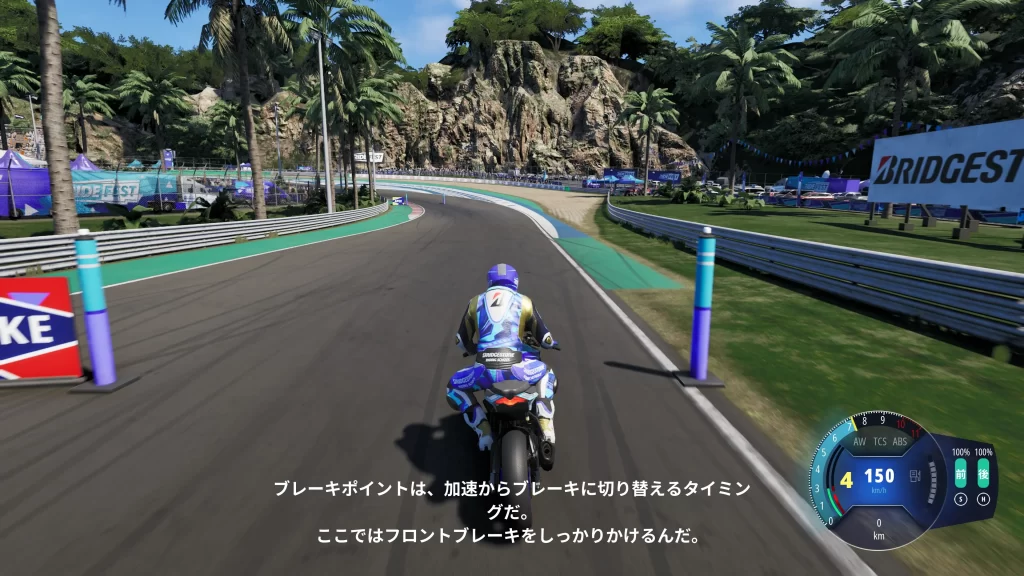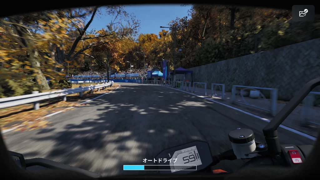 マリオカートと同じ感覚でアクセルボタンもブレーキボタンも100%押し込んじゃってたんだけど、現実でバイク乗ってる時にアクセル100%でかけることって無いし(多分)、時速百何キロとか出てるのにそのまま突っ込んでいったらそりゃ曲がりきれないよな…