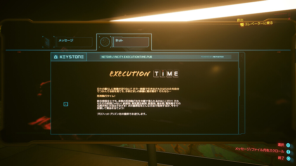 このままじゃナイトシティの外で自撮りするだけで体験版終わってしまうのでいい加減進めるぞ