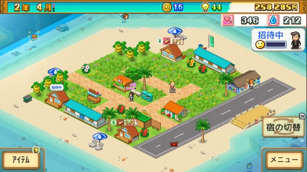 というわけで、リゾートのオープンから(ゲーム内時間で)7年くらい経ってやっと色々な人から愛されるリゾート作りに向けて重い腰を上げ始めた。